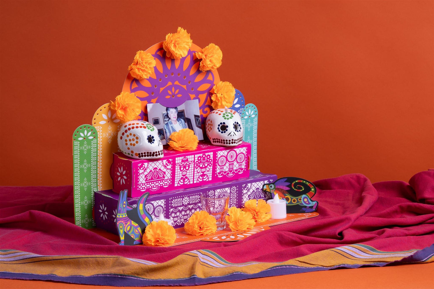 Bring the essence of "Día de muertos" into your home. This pop-up altar is more than a decorative piece, it's a beautiful way to honor and celebrate the vibrant spirits of our past.