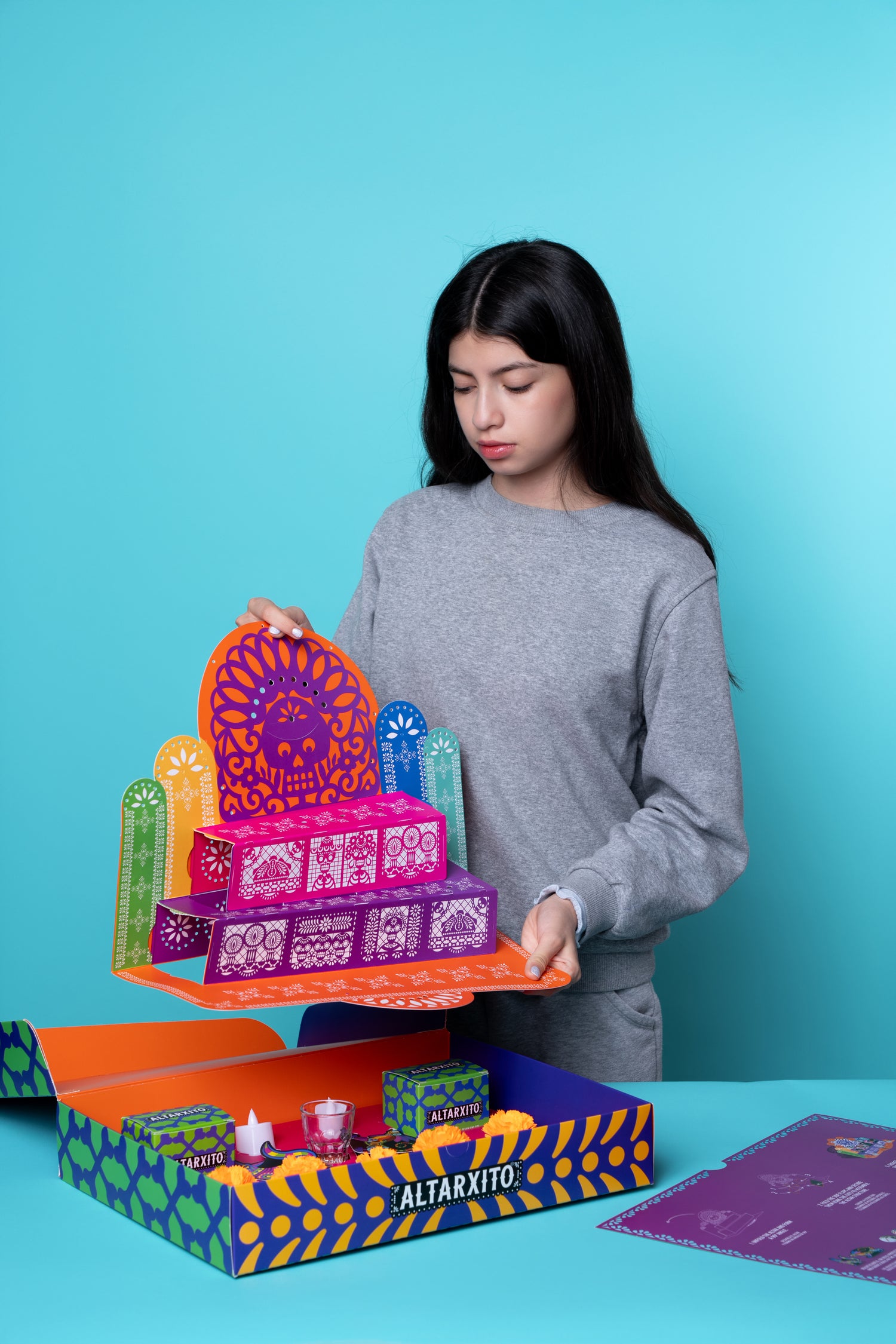 With everything you need for your altar delivered in a colorful, reusable box with custom art, you can set up your Altarxito in minutes and start customizing it to honor your loved ones.